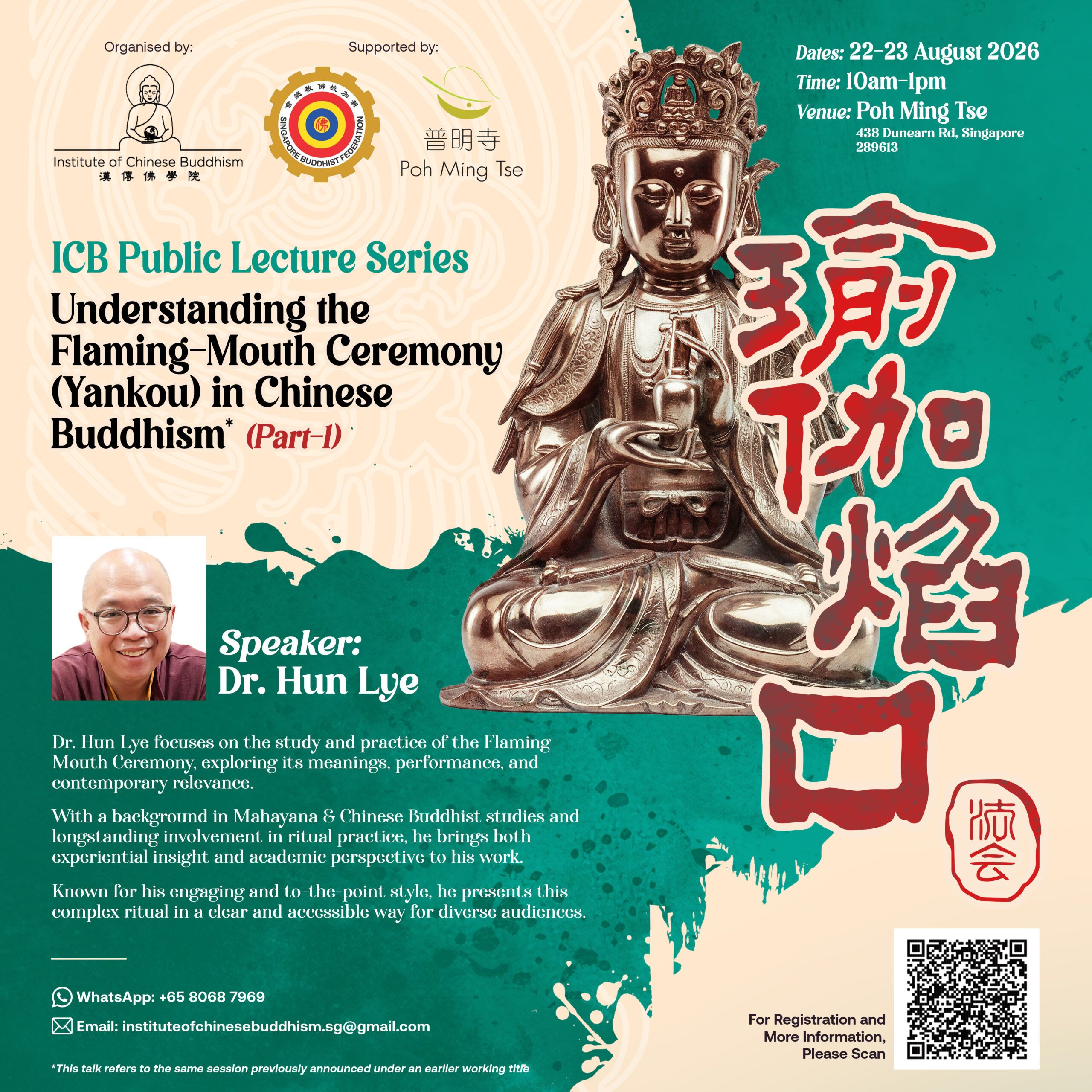 Institute of Chinese Buddhism (ICBuddhism) is a not-for-profit company limited by guarantee with the strategic intent of providing quality education and learning services to English-speaking groups so as to get to know, learn, practise and eventually derive spiritual benefits from the cultivation and teachings of Chinese Buddhism. Qualified Dharma teachers, scholars, monastics and lay practitioners are regularly invited on board to share subject and content by way lectures, meetings, workshops, focus-groups, retreats, etc.